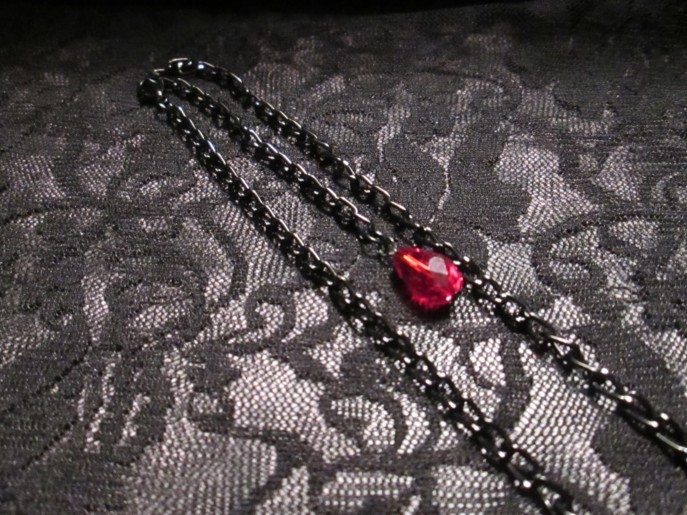 This set includes a lovely vampire cameo necklace and your choice of earrings. The cameo has the words “Bite Me” on it, and sexy vampire lips, and is set in a black metal frame and hung from a black chain. There is also an accent red teardrop crystal hanging from the back. There are two sets of earrings to choose from, black bow earrings with accent blood red teardrop crystals, and blood drop earrings with simple black chain and blood red teardrop crystals. By buying this duo, you save money compared to buying them separately! Perfect for any vampire lovers out there!