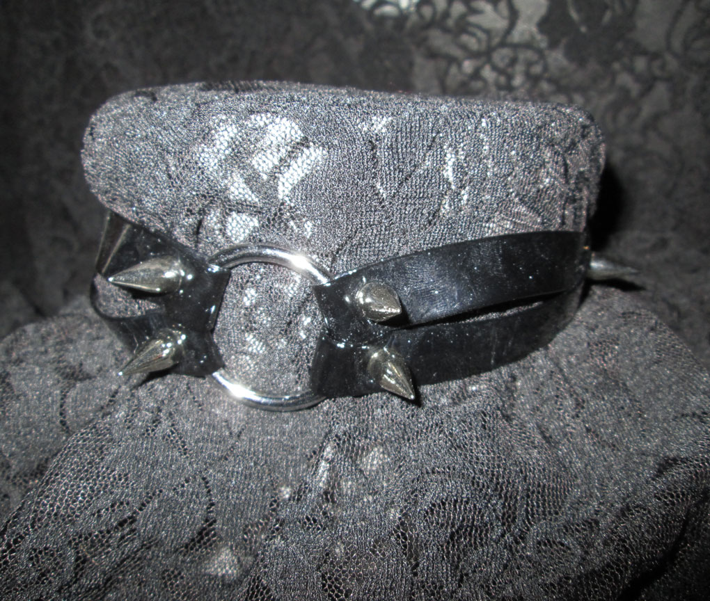This is a lovely piece, it has all the benefits of having an edgy o-ring and spikes, while appearing quite delicate with the thin polyurethane strips and criss-cross pattern. It attaches in the back with easy to use clasps, they can attach multiple ways to tighten the choker or loosen it and it would fit the average person’s neck (including mine which is quite large). That being said I would advise you to measure your neck’s circumference just to be sure. The largest length spans approximately 14 inches (or 35cm) and the tightest closure leaves you with approximately 12 ¾ inches (or 32.4cm). Just a great piece to have!