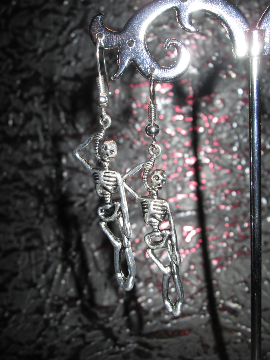 Jolies boucles d’oreilles en couleur argenté, avec des pendentifs squelettes détaillés suspendu des boucles d’oreilles comme si d’un nœud coulant. Définitivement pour ceux et celles qui aiment le macabre!