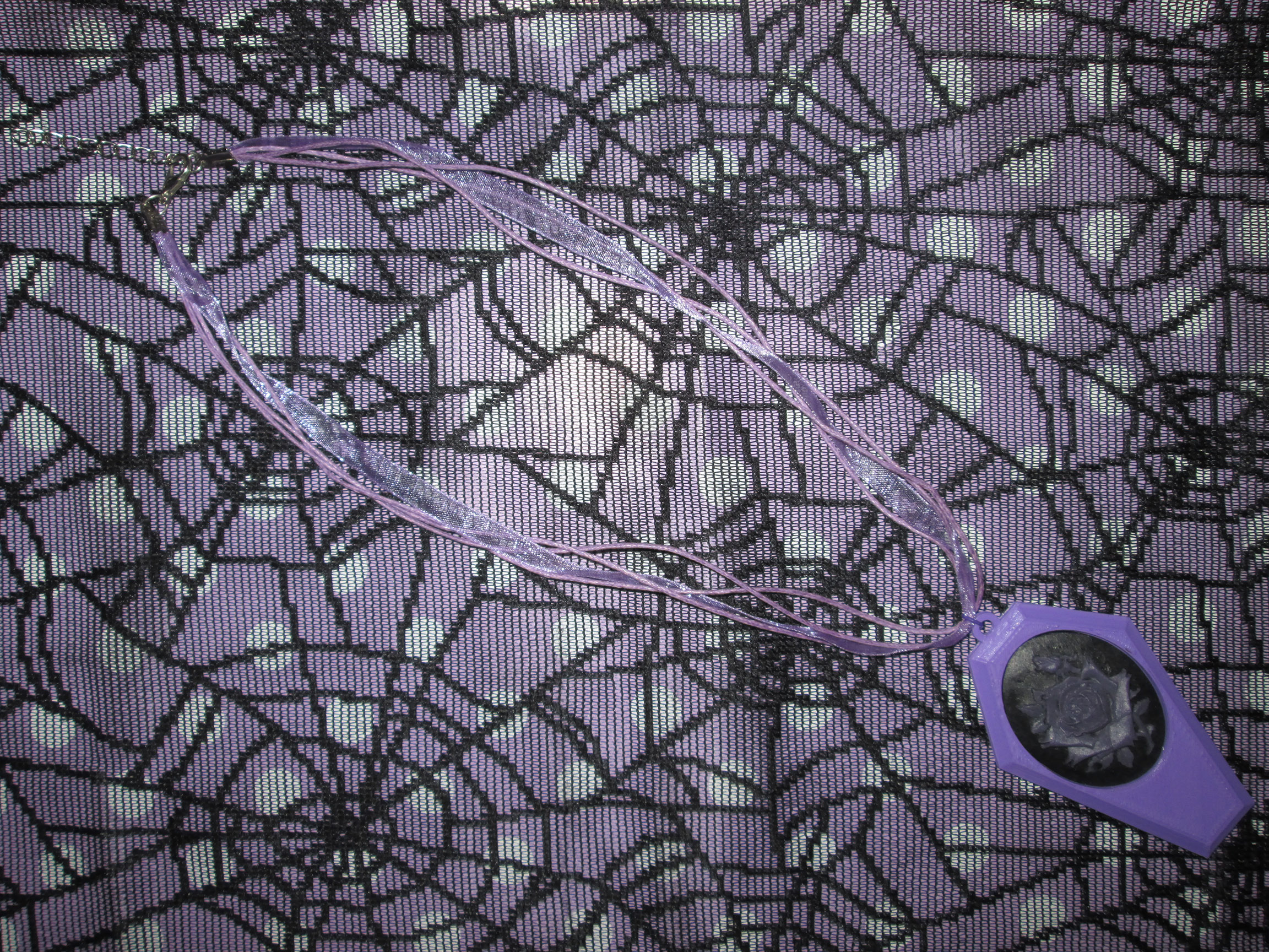 Lilac Coffin Necklace with Black and Purple Rose Cameo