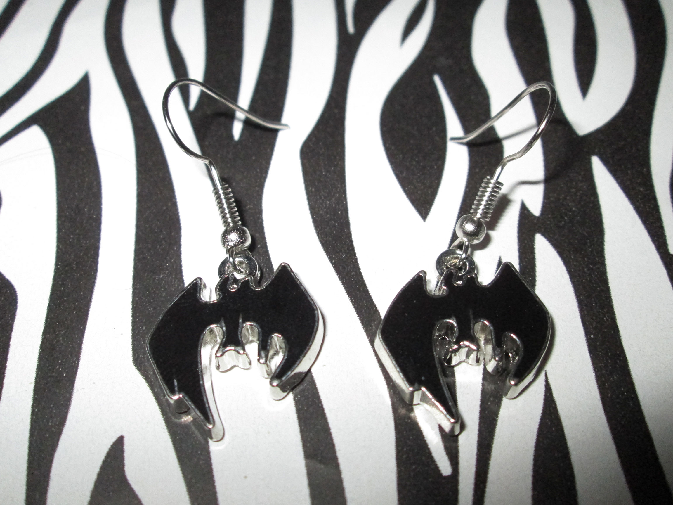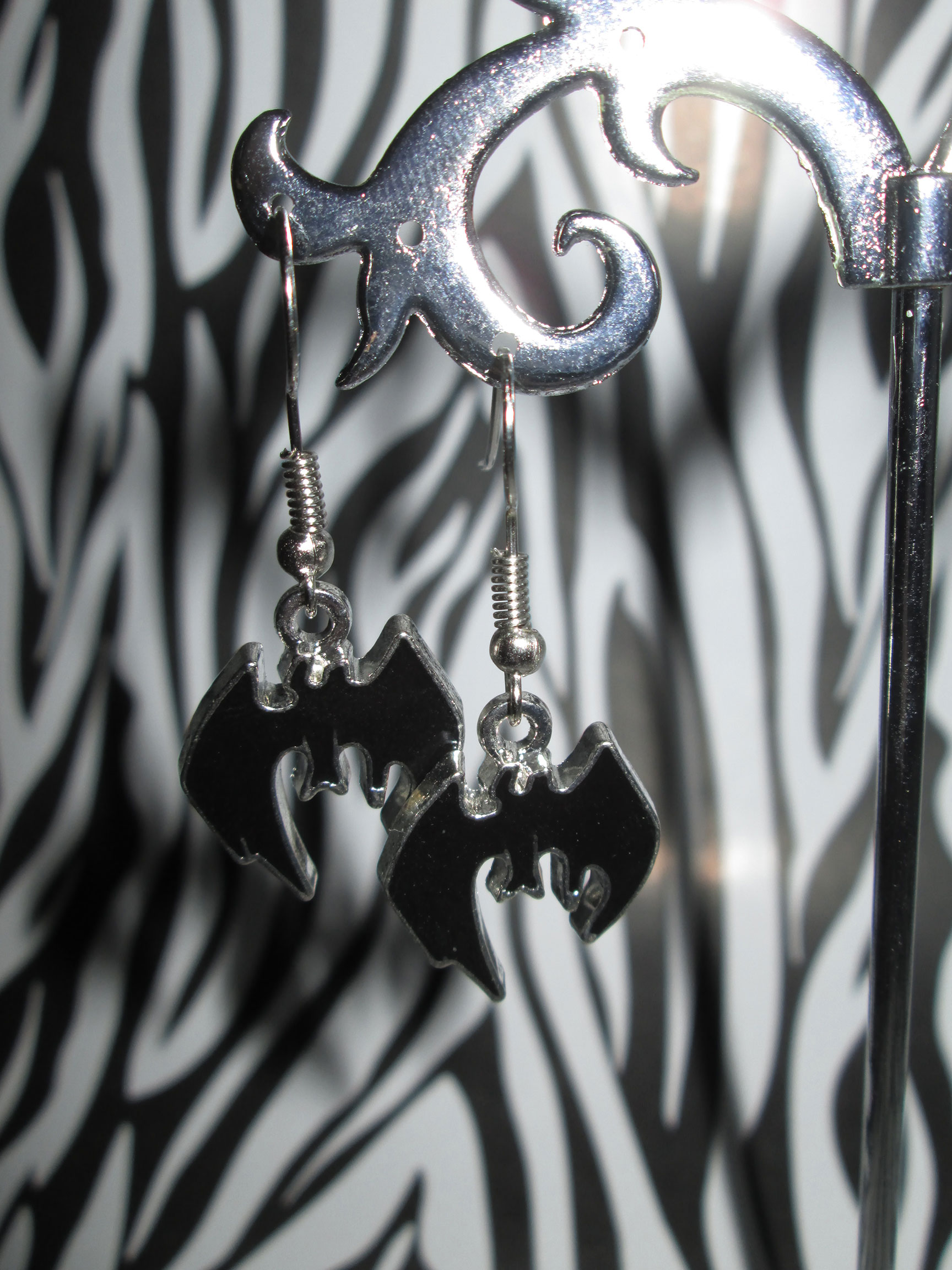These earrings are simple in black and silver, but have a unique upside down bat design!