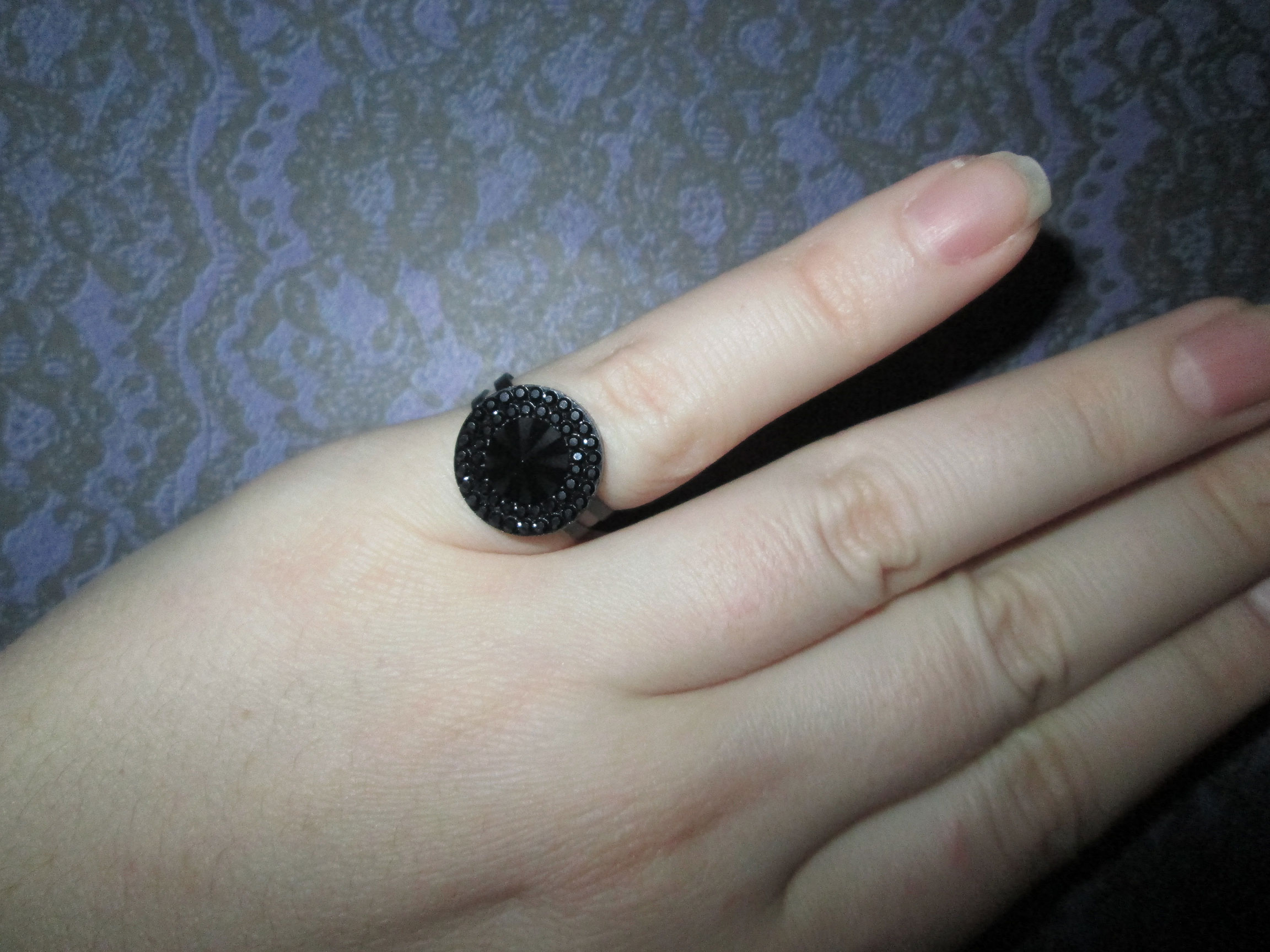 Black Circle Rhinestone Cabochon Ring with Black Base (Small, Medium, or Large)