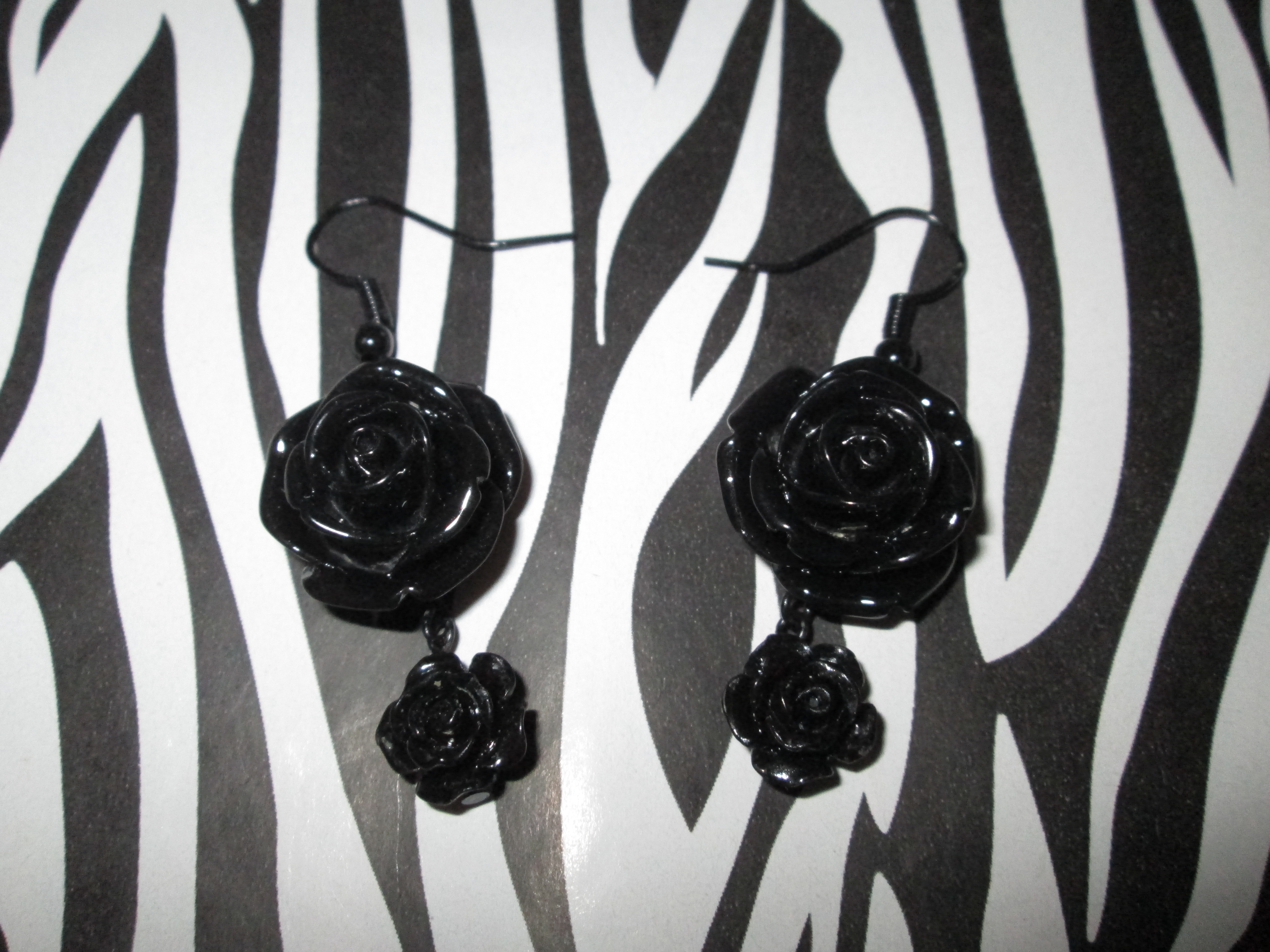 Classic and beautiful! These earrings consist of large black rose beads, as well as small ones, eye pins, black flat head pins and black earrings hooks. Just lovely!