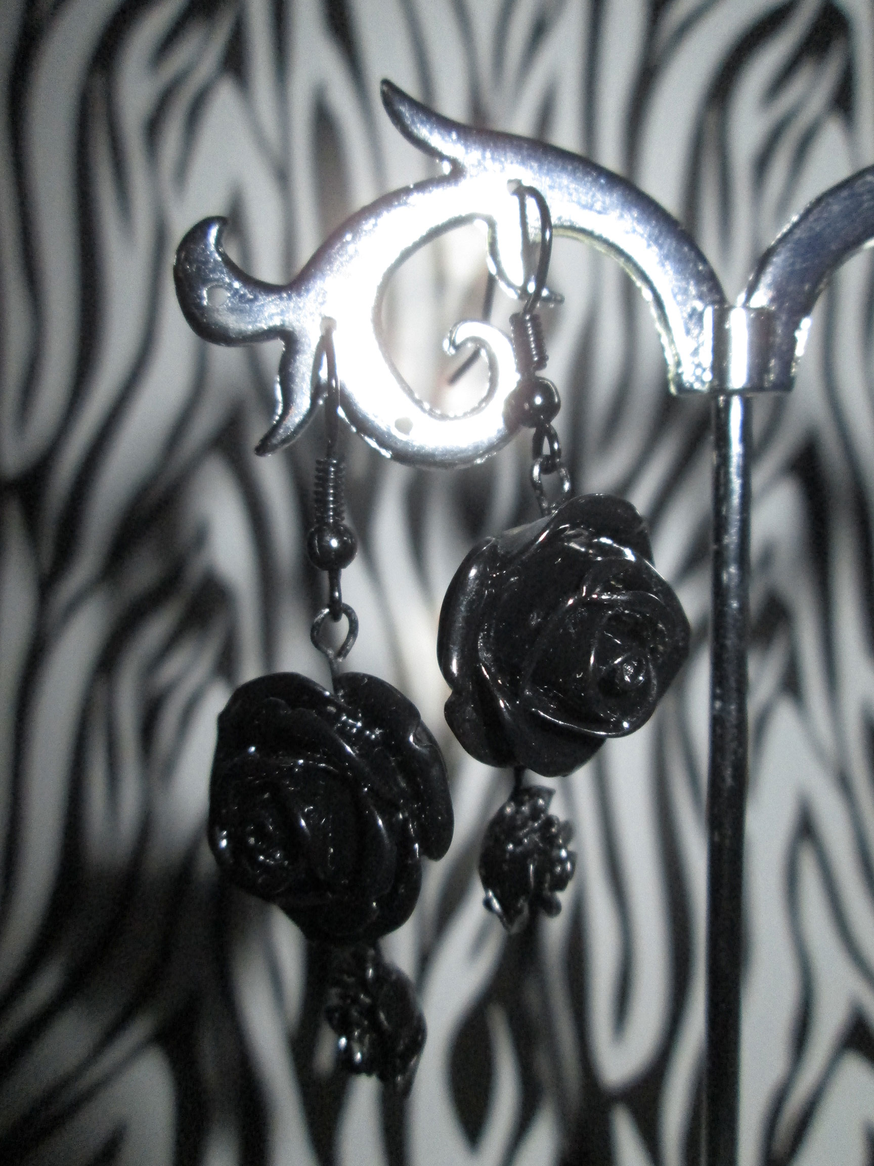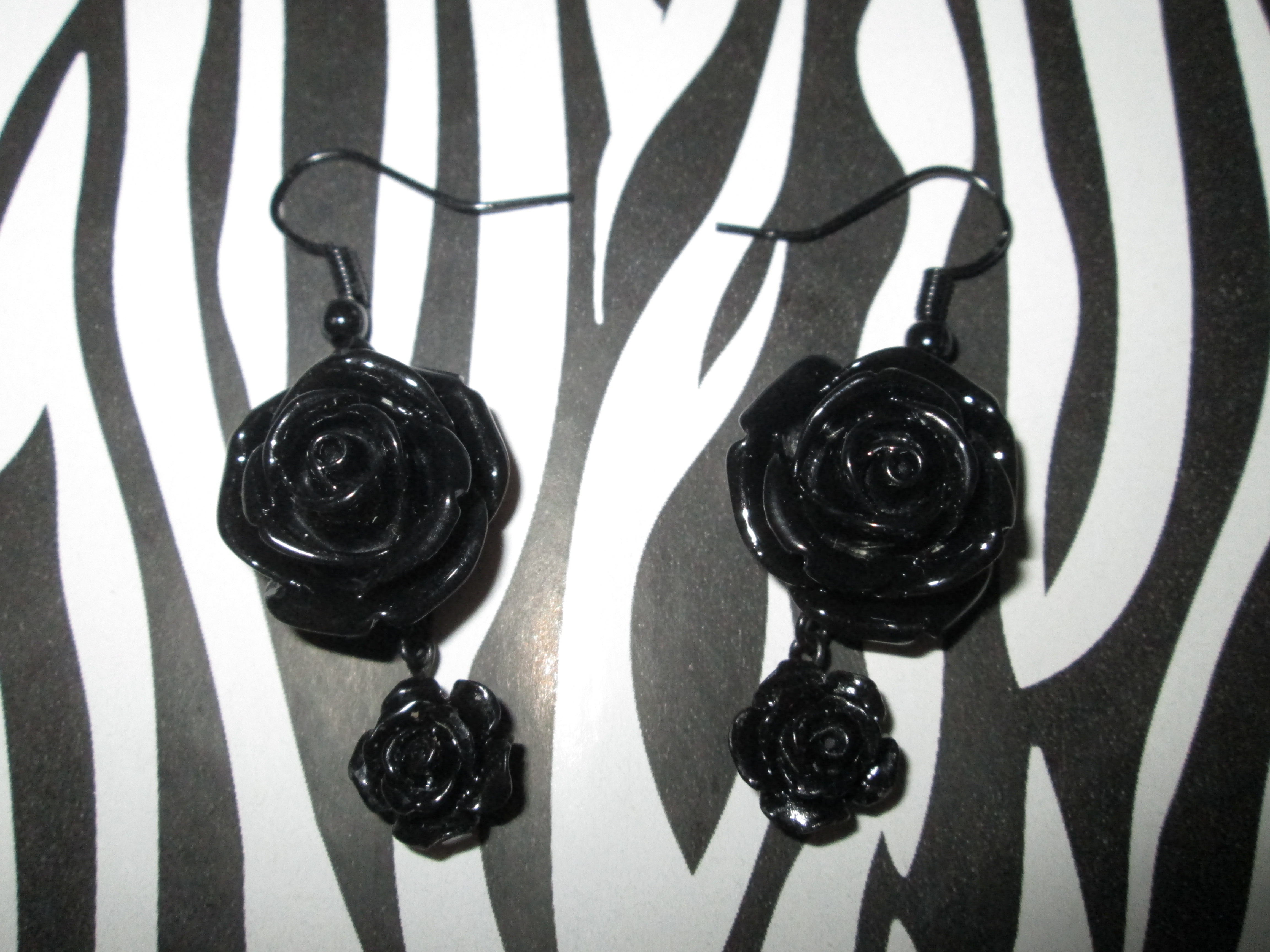 Classiquement belles! Ces boucles d’oreilles consistent des grands et petits billes des roses noires, des fils métalliques, et des crochets noirs. Vraiment jolies!
