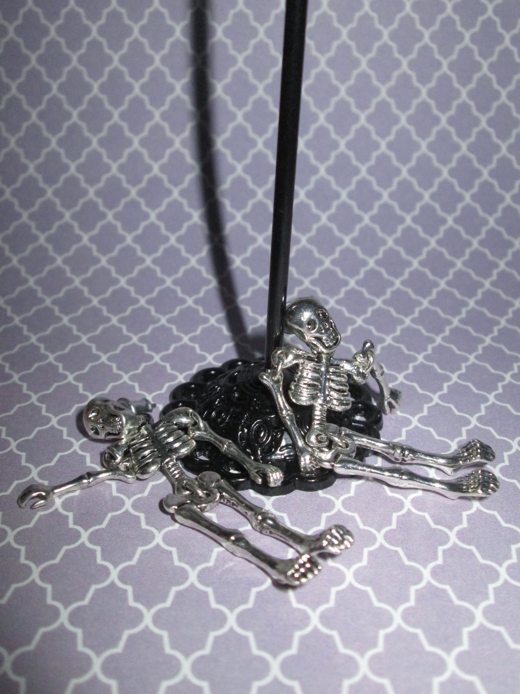 These earrings are amazing! They are detailed skeleton stud earrings, and since their limbs are jointed, they move at will. They aren’t too heavy to wear, and definitely make a statement!