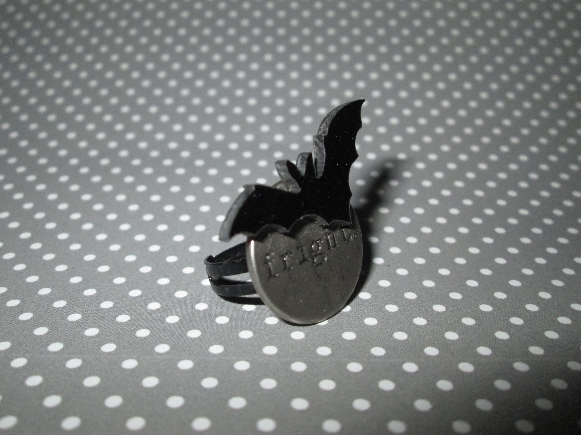 Bague chauve-souris avec mot effrayant en gris et noir (Fright)