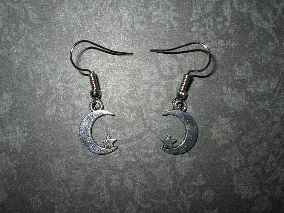 Lovely pair of earrings in a silver tone, with delicate crescent moon and star pendants. Perfect for those who are fans of the occult, or who just love to look up at the sky on a starry night!