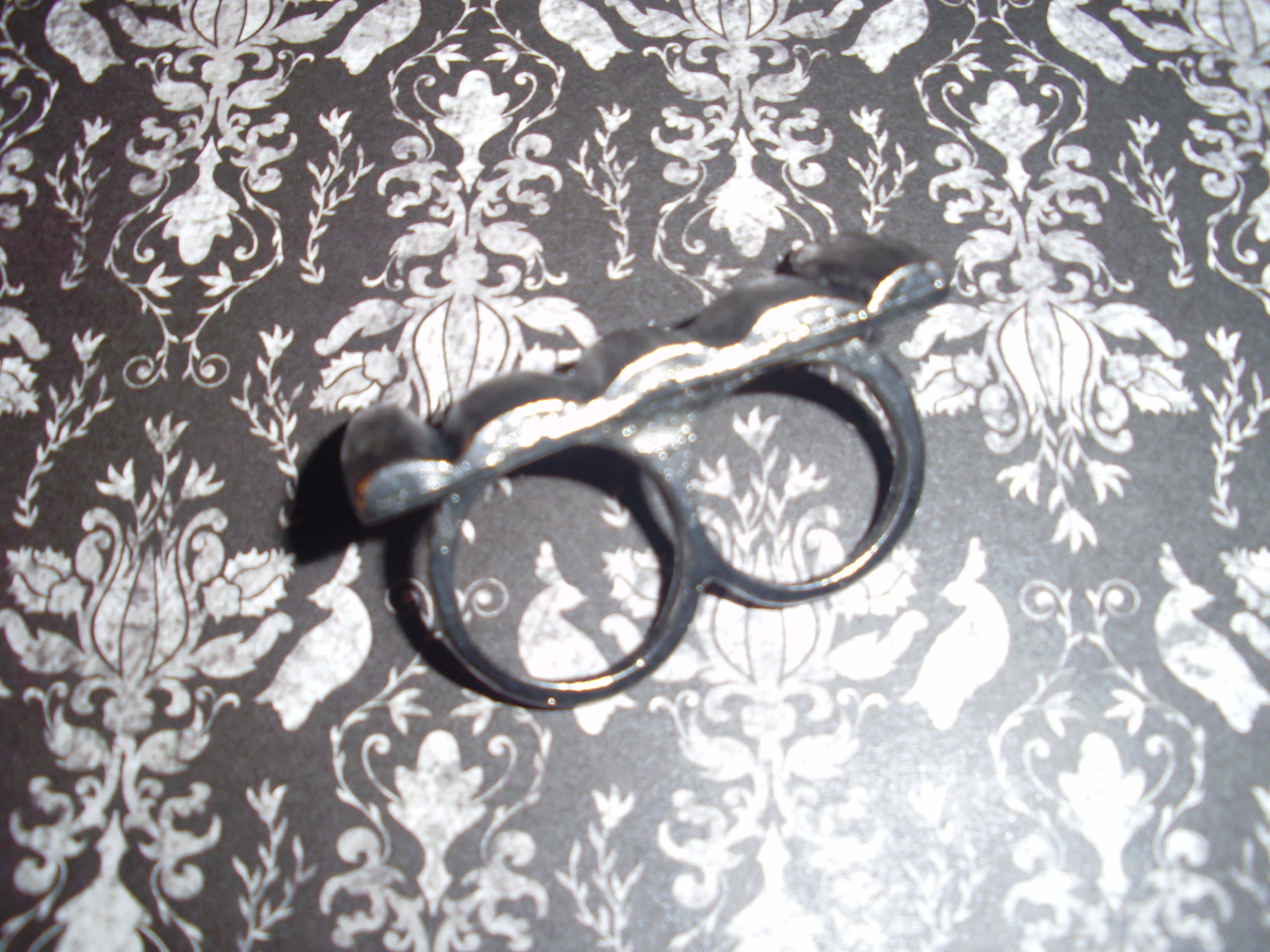 This is a double ring in a silver color, in sizes 5 & 6 respectively. Great for everyday life or adding some glitz to a night on the town. Either way, a very striking item to have.